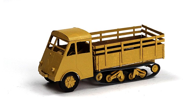 Booklet n°11, Renault AHS, AHN and AHR - November the 28th 2025. The original design was very modular, it allowed to make three types of truck with many components in common and few curved components. Since I decided to avoid any window materials in my vehicle designs, except when folded down (Marmon-Herrington, possibly also the Morris CS8 in the future), there was the risk of have large rectangular openings that looked out of place. In this design, this is somewhat mitigated by having the front shield horizontally divided in two, which is also visually interesting. This was a project I wanted to make for a long time.